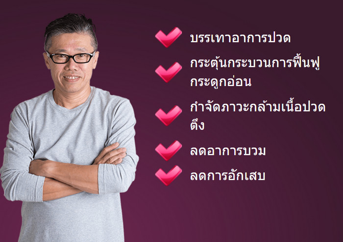 - สามารถบรรเทาอาการตะคริว แดง และปวดได้