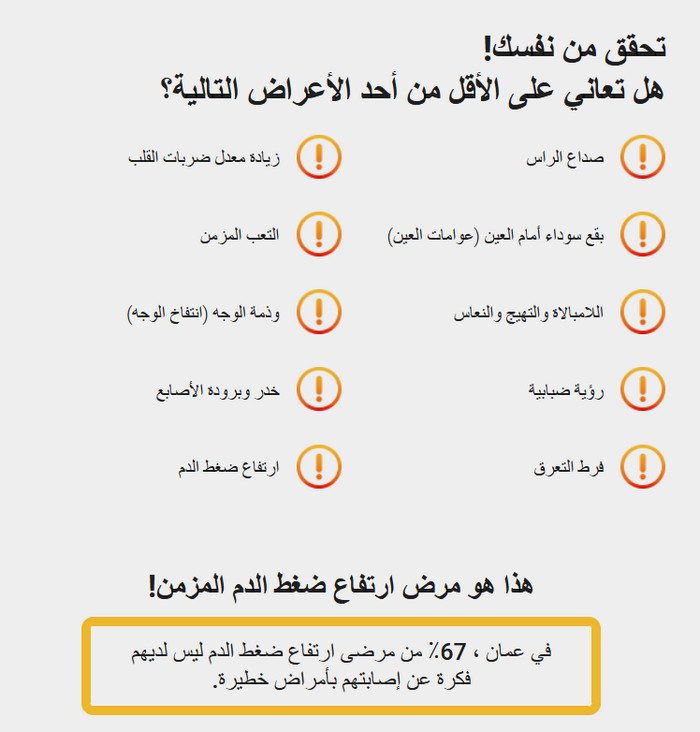 - أعلن الغياب التام لعلامات ارتفاع ضغط الدم