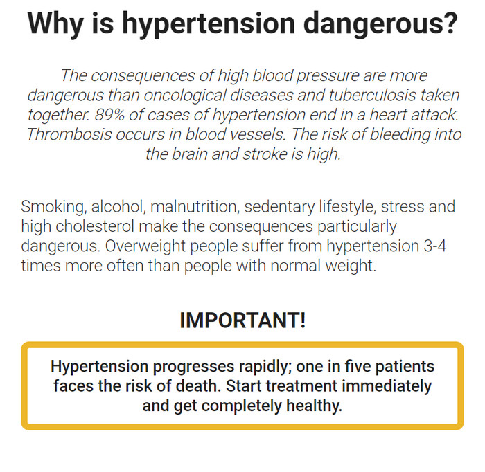 The life expectancy of patients with hypertension is about 10 years less than that of all other people. Without proper timely treatment, death can occur at a fairly young age.