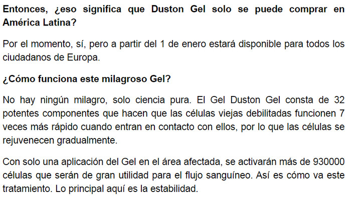 Duston Gel farmacias, ingredientes, uso de, foro, testimonios