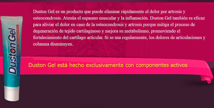 Olvídese del dolor en las articulaciones para siempre, todo lo que necesita es comprar un gel Duston Gel en pagina oficial y usarlo según sea necesario. La crema no se puede comprar en farmacias.