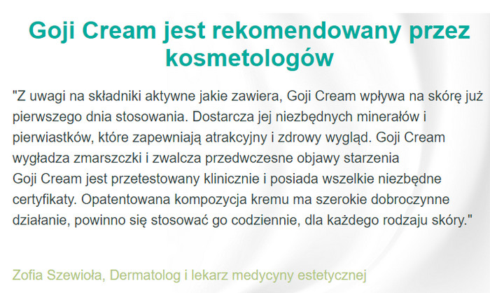 Goji Cream forum, jak stosować, cena