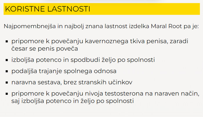 Farmacevtski namen izdelka za erekcijo Maral Gel: