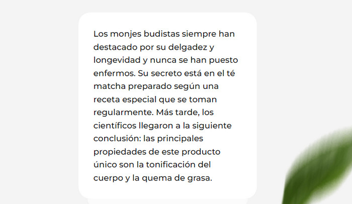 Durante las pruebas se demostró que Matcha Slim son el único método seguro que le permite reducir significativamente el peso en el menor tiempo posible. Así lo confirman más de un millón de compradores que han experimentado por sí mismos la acción del producto y están satisfechos con los resultados. ¿Cuál es el poder milagroso de la droga?
