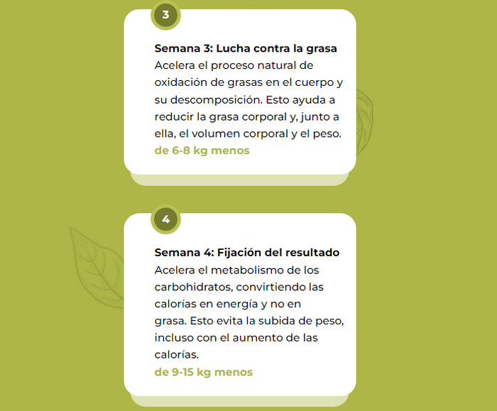 - Proporciona una cómoda pérdida de peso sin dietas, actividad física y procedimientos especiales