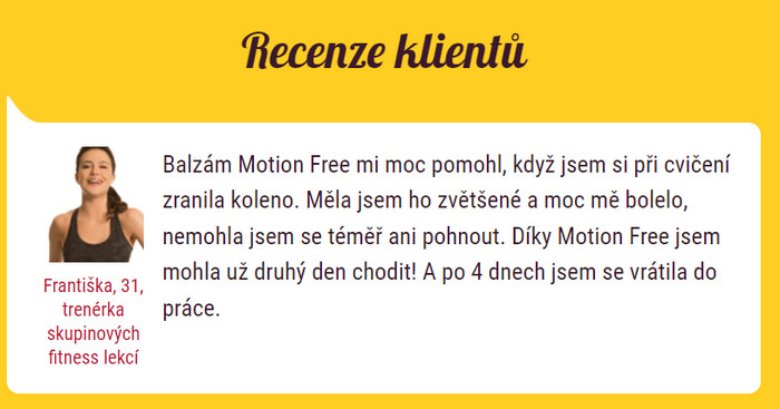 Výsledek na sebe nenechá dlouho čekat – to potvrzují skutečné recenze 97 % uživatelů gelu Motion Free, kteří na nemoci zad a kloubů navždy zapomněli.