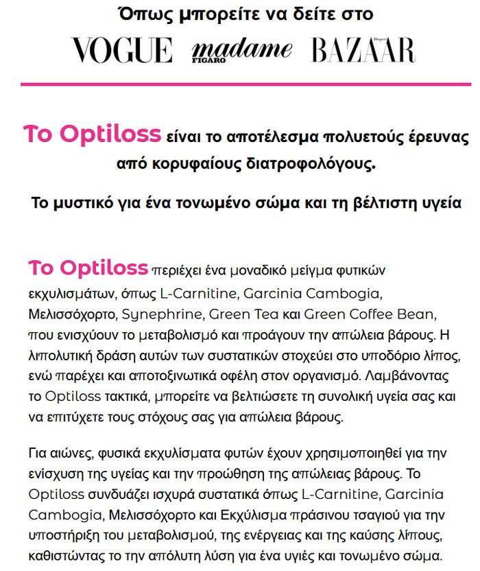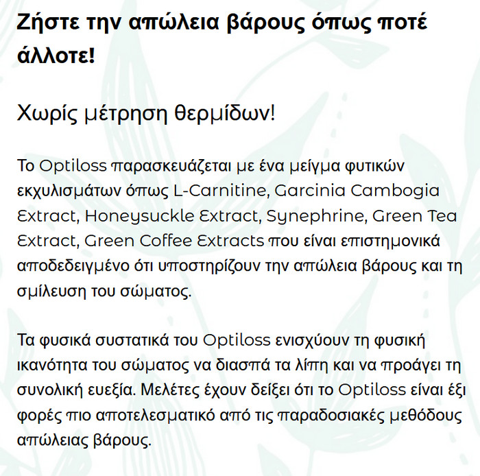 Optiloss κριτικες, συστατικα, οδηγιες χρησης