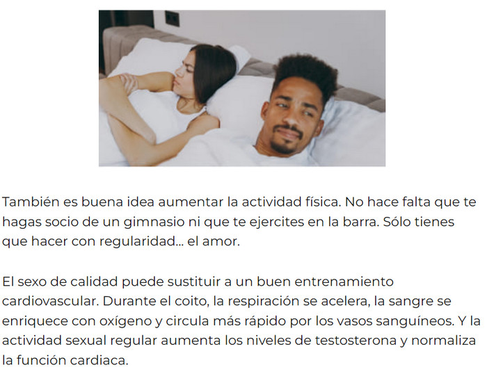 - Revive el interés por las relaciones sexuales, mejora la producción de testosterona