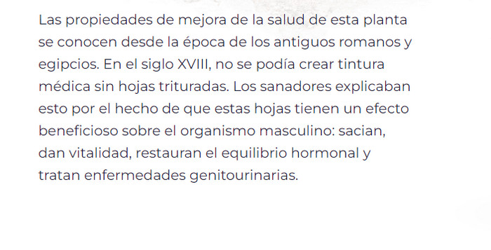 - Aumenta la potencia masculina, despierta el deseo sexual, proporciona duración de las relaciones sexuales y un éxtasis poderoso