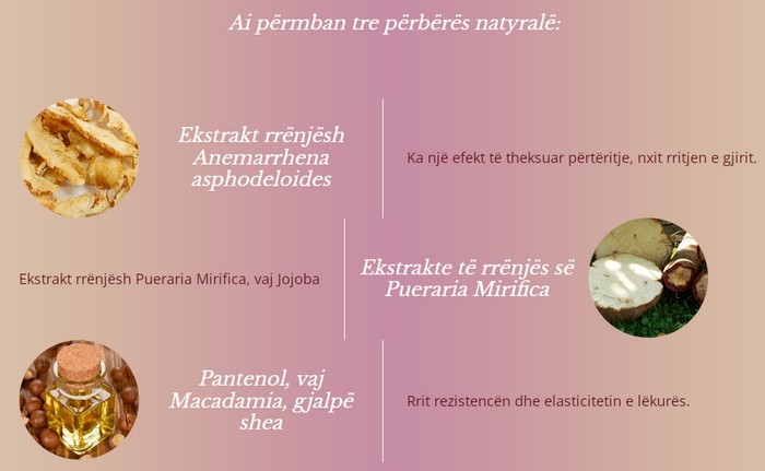 - Ky komponent ngadalëson procesin e plakjes, stimulon rritjen e bustit dhe fillon procesin e përtëritjes